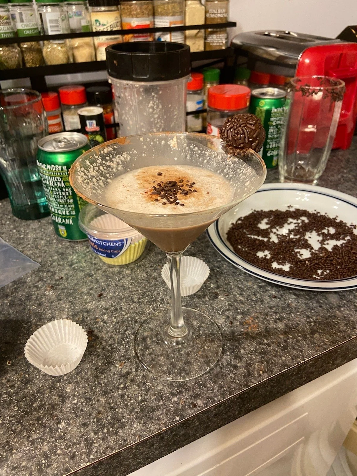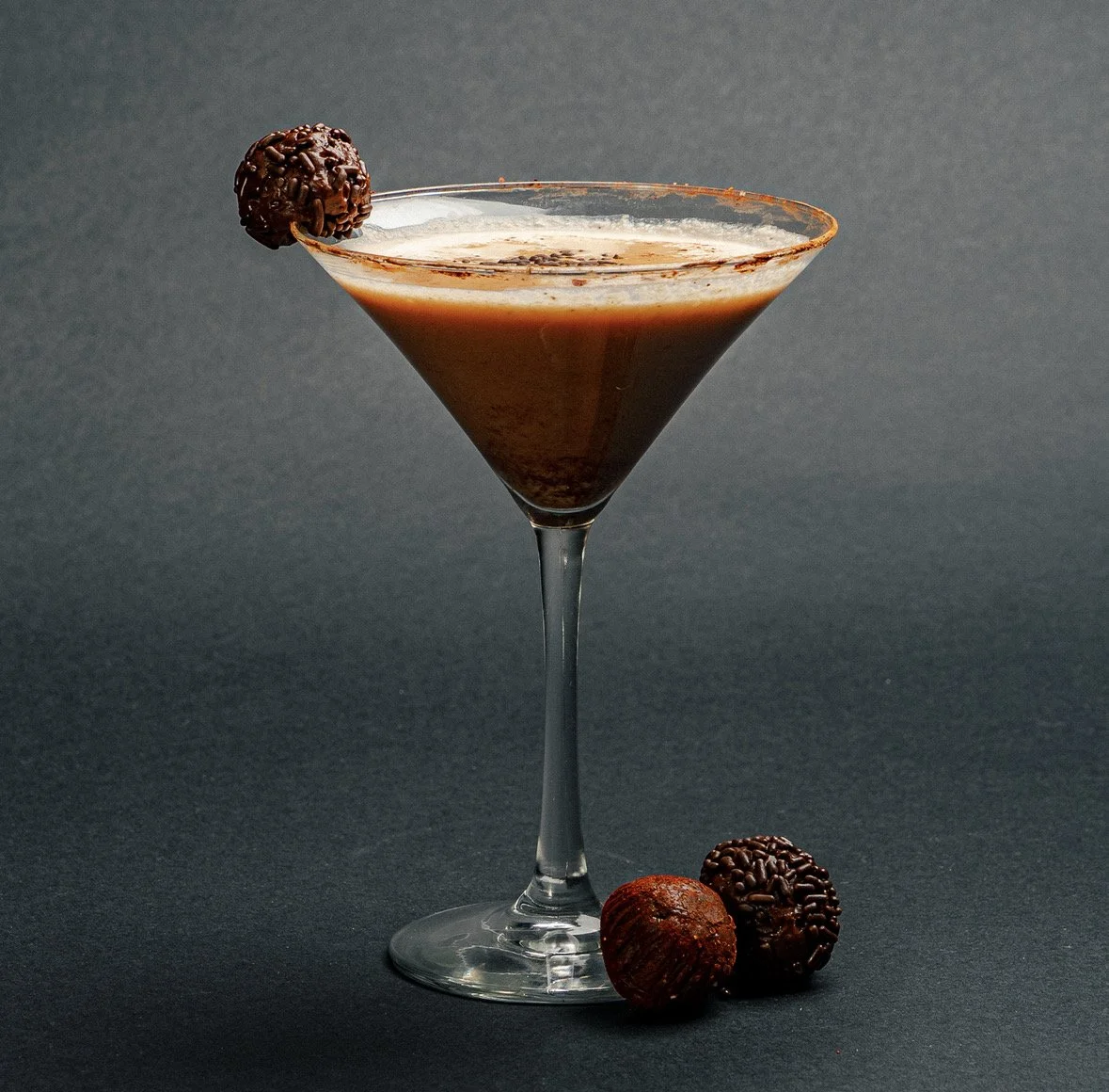 Lastly, partially slice Brigadeiro and sit the treat on the rim of the glass.